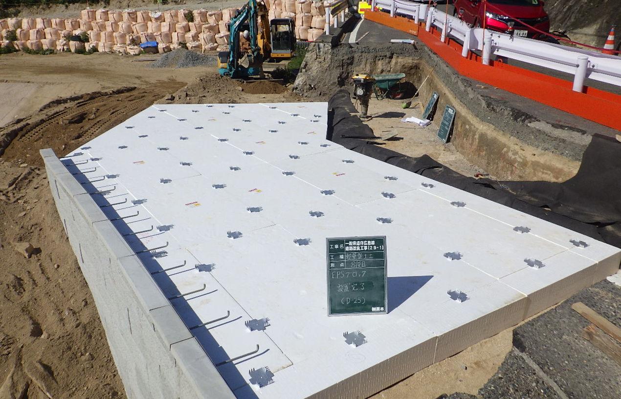 、補強土壁工:約230m2、法面工、擁壁工、軽量盛土工、排水構造物工、区画線工、道路付属物工他1式