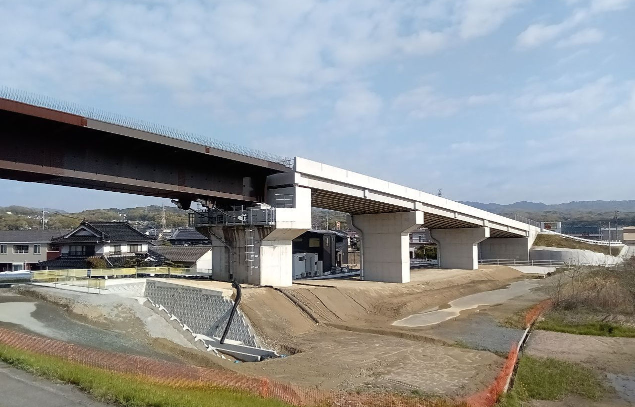 本工事は福山市駅家町の津之郷山守線において、慢性的な交通混雑の緩和を図り、物流の効率化をはじめ生産性向上を目的とした道路改良を行う工事でした。